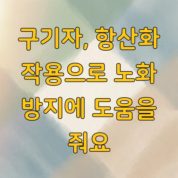 구기자에는 베타카로틴 과 같은 강력한 항산화 성분이 풍부하게 들어있어요. 이 성분들은 우리 몸속 유해한 활성산소를 효과적으로 제거해 준답니다. 활성산소는 세포 손상을 일으키고 노화를 촉진하는 주범인데요.